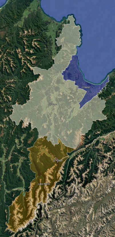 The Coastal, Waimea and Lake Rotoiti zones extend from and include Abel Tasman National Park, Nelson Lakes National Park, Kahurangi National Park (east of the Mt Arthur Range), Richmond Ranges and all the areas of the Waimea Plains and urban settlements.